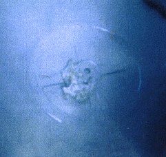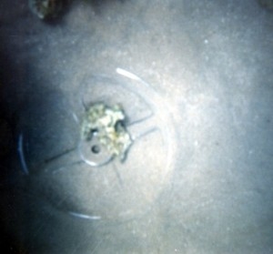 Above, round chariot wheel found off the Gulf of Aqaba coast of Saudi Arabia, opposite of Nuweiba, Egypt. (photo Viveka Ponten and The Exodus Revealed)