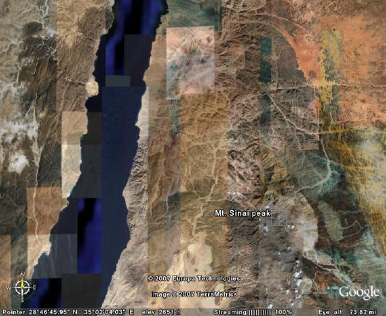 Above we see the crossing site at the large beach, and we see the real Mt. Sinai in the lower right