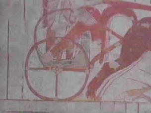 Above, left, photo taken of a gilded chariot wheel that remains on the sea floor. It was found by Ron Wyatt using a molecular frequency generator from his boat above, after he set the equipment to search for gold. The Bible said all the chariots of Egypt and 600 choice chariots, or gold veneered models, were in the army pursuing God's people. It is speculated there were 20,000 chariots destroyed that day. Above, right, is a drawing of a four spoke chariot found in an Egyptian tomb from the same time period. Four, six and eight spoke wheels are found here in the gulf, and were only used at the same time during the 18th dynasty or 1446 BC when the exodus took place.