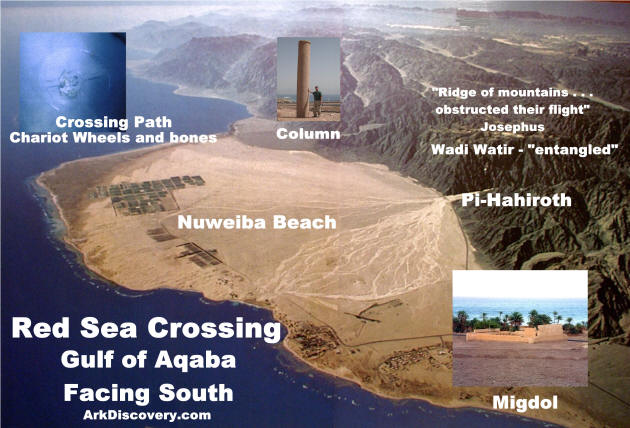 King Solomon had these columns erected 400 years after the miracle of the crossing of the Red Sea on dry land. Solomon's sea port was at the northern tip of the Gulf of Aqaba at Eilat (I Kings 9:26) and he was very familiar with the Red Sea crossing site, as it was in his neighborhood. The Bible even mentions this column! Isaiah 19:19, "In that day there will be an altar to the Lord in the midst of the land of Egypt, and a pillar to the Lord at its border." You can visit the beach today and see the column in person, as I was able to do in Oct. 2005.