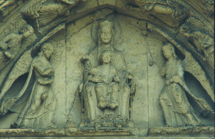 The Virgin portrayed in the west facade of Chartres Cathedral is called the 'Virgini Pariturae', which means "the virgin about to give birth". This statue does not represent Mary or the Biblical concept of womanhood, but the archetypal goddesses of fertility and the 'feminine principle'. Since Chartres was dedicated to the Sun-God, the child of the sculpture is Horus, not Jesus Christ. The following excerpt from Rosslyn reveals how Gnostic occultism engulfed Western Christendom through the occult infiltration of the Roman Church.