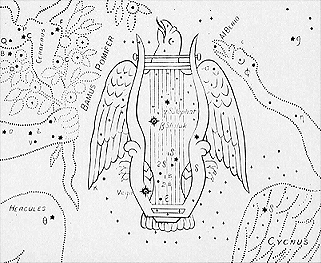 in the river. Jupiter sent a vulture to scoop it out of the river and then placed it in the sky..." (1043) 'Lyra'