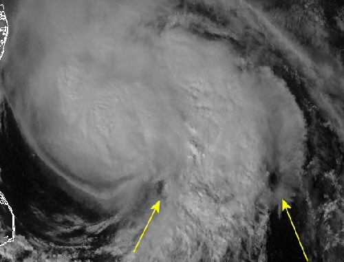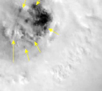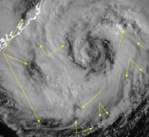 Ophelia looks more like a squid than a tropical storm! These monster holes/eyes are used as guides for these storms. These holes are present in nearly all clusters of thunderstorms whether or not they are associated with a tropical storms. Check out the July satellite imagery page for more examples away from the tropics.