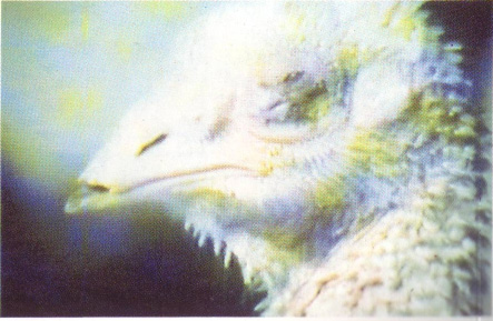 Many breeding turkeys are debeaked, to minimise aggression and cannibalism. Males are often de-snooded, and are thus deprived of a sensitive and expressive organ. As can be seen from this photo, debeaking a flock provides no guarantees that severe damage will not be inflicted by fellow birds.Diseases in Breeders