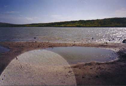 This innocently looking little lake is really a bomb crater caused by explosions.